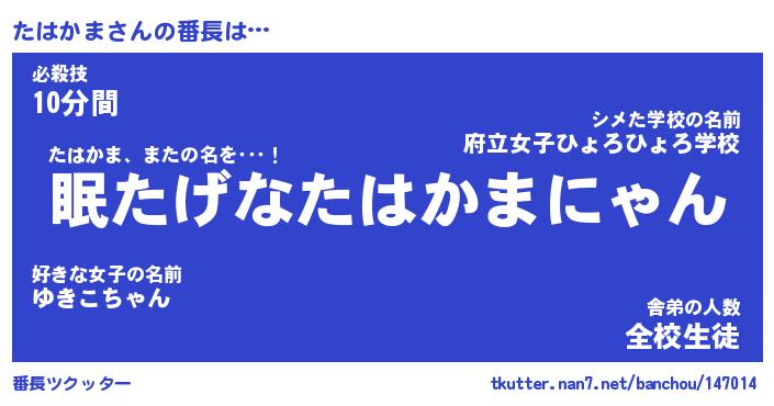 | ファンタジー風あだ名 | 『タハフェル』『エターナルタハカマー』 |
