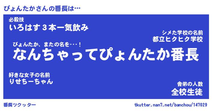 | ヘコむあだ名 | 『ぴょにー』『なまこ酢』『ぴょっぺ』 |