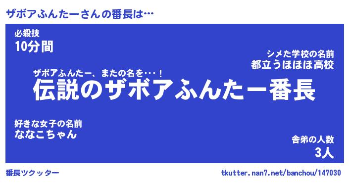 | 男性向けラノベタイトル風あだ名 | 『ザボアふんたーの憂鬱』 |
