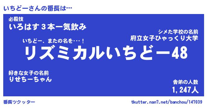 | 意味不明あだ名 | 『ペロリンいちどー』『永久保存いちどー』 |