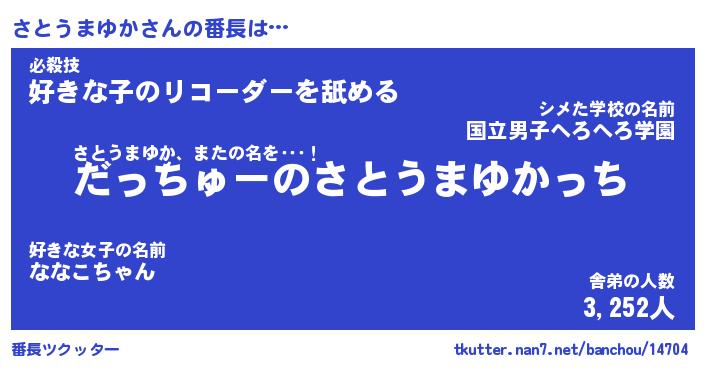 | 意味不明あだ名 | 『ペロリンさとうまゆか』 |