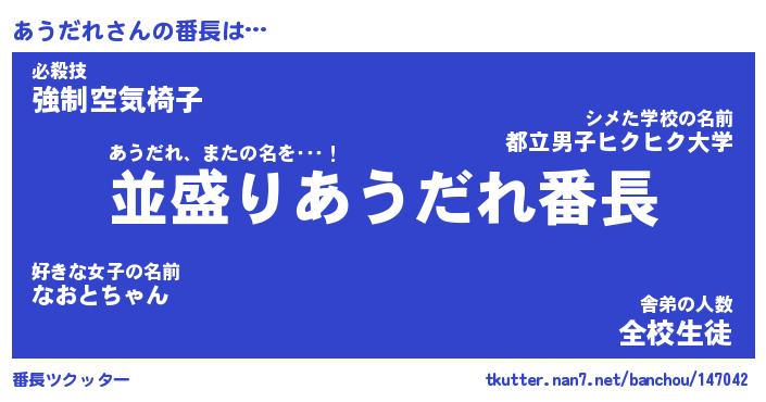 | 意味不明あだ名 | 『ペロリンあうだれ』『永久保存あうだれ』 |