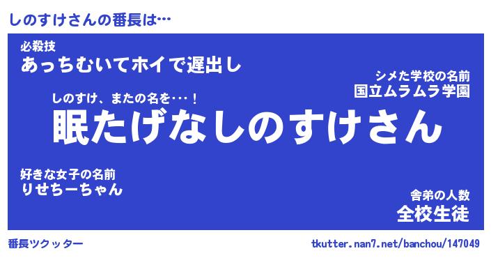 | 肩書あだ名 | 『しのすけCEO』『しのすけ総理大臣』 |