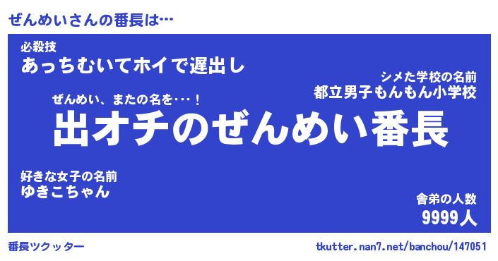 | 意味不明あだ名 | 『ペロリンぜんめい』『永久保存ぜんめい』 |