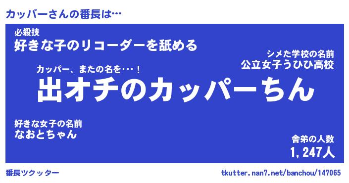 | 意味不明あだ名 | 『ペロリンカッパー』『永久保存カッパー』 |