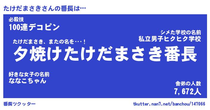 | 2回繰り返すあだ名 | 『たけたけ』『たたけけ』『いそいそ』 |