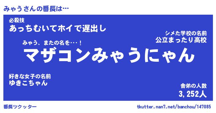 | ファンタジー風あだ名 | 『ミャフェル』『エターナルミャウー』 |