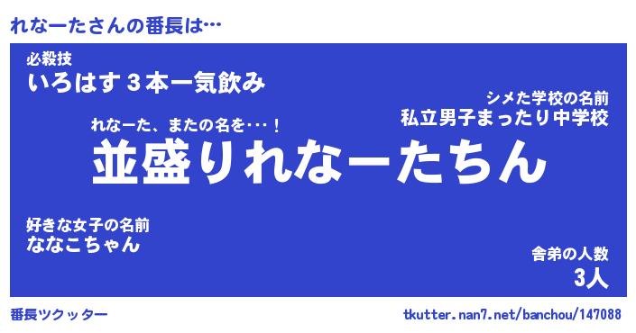 | 意味不明あだ名 | 『ペロリンれなーた』『永久保存れなーた』 |