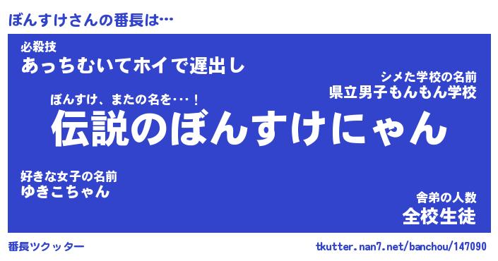 | ヒーロー風カッコイイあだ名 | 『スーパーボンスケ』『暗黒騎士ボン』 |