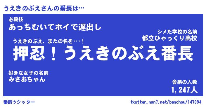 | 伝説のあだ名 | 『封印されしスナイパーうえきのぶえ』 |