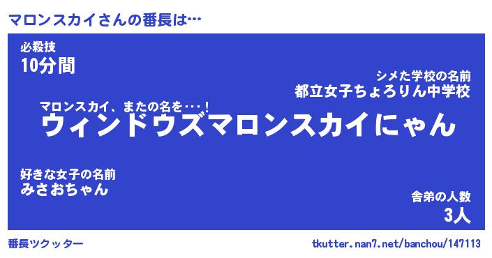 | 男性向けラノベタイトル風あだ名 | 『マロンスカイの憂鬱』 |