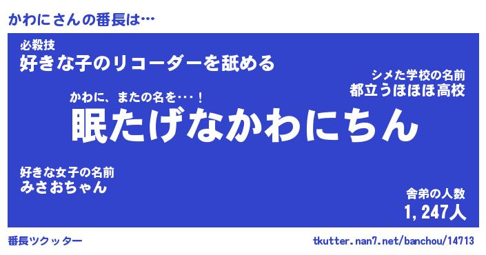 | 肩書あだ名 | 『かわに社長』『かわに国家主席』 |