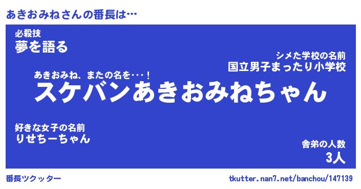 | 肩書あだ名 | 『あきおみね社長』『あきおみね国家主席』 |