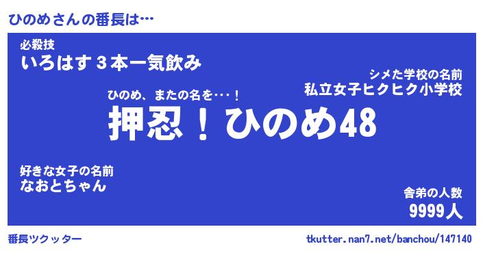 | 伝説のあだ名 | 『封印されしスナイパーひのめ』 |