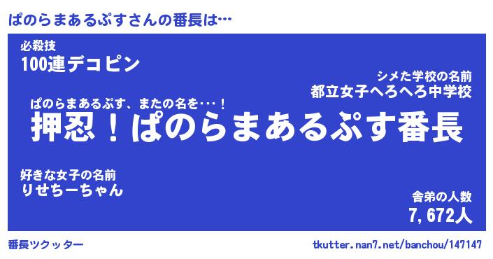 | 肩書あだ名 | 『ぱのらまあるぷす御曹司』 |