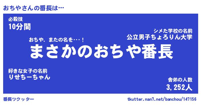 | ヒーロー風カッコイイあだ名 | 『スーパーオチヤ』『ウルトラおちやマン』 |