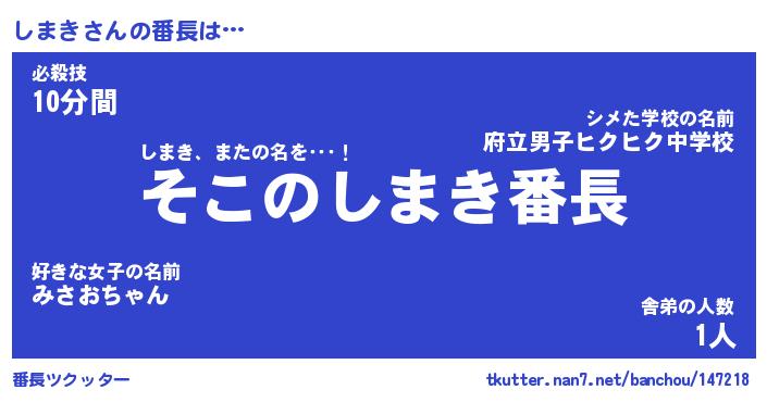 | ファンタジー風あだ名 | 『シマフェル』『エターナルシマキー』 |