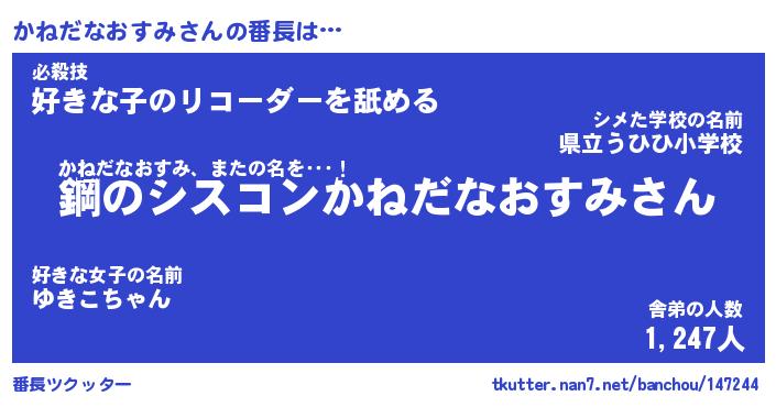 | 伝説のあだ名 | 『封印されしスナイパーかねだなおすみ』 |