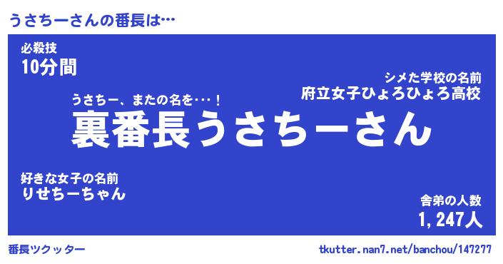 | ヘコむあだ名 | 『うさにゅー』『牛乳』『うさっぺ』 |