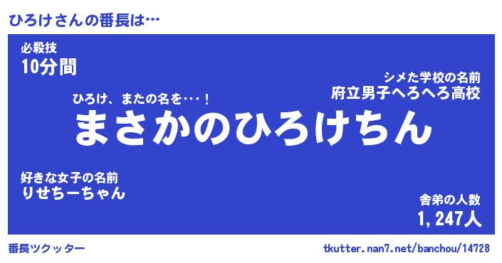 | 男性向けラノベタイトル風あだ名 | 『ひろけの憂鬱』 |