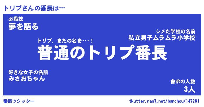 | 女子向けラノベタイトル風あだ名 | 『トリプ姫と円卓の騎士』『トリプ恋絵巻』 |