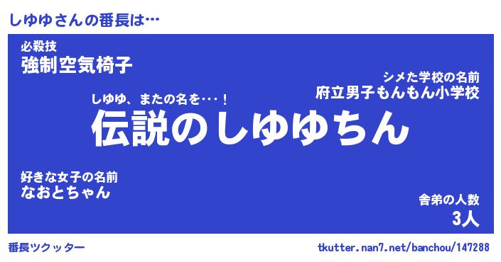 | ヘコむあだ名 | 『しゆにゅー』『牛乳』『しゆっ子』 |