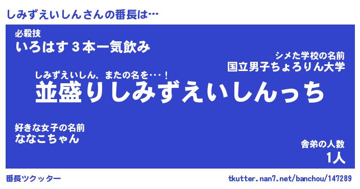 | 欧米人風あだ名 | 『マイケルしみずえいしん』 |