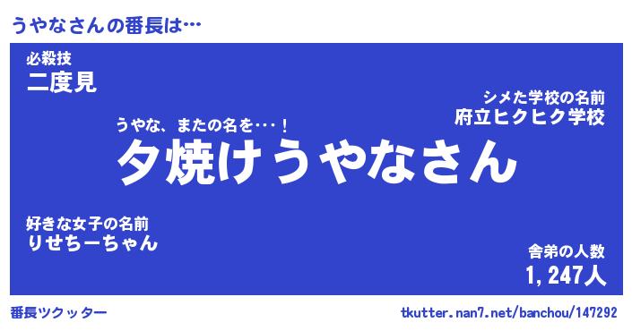 | ファンタジー風あだ名 | 『ウヤフェル』『エターナルウヤナー』 |
