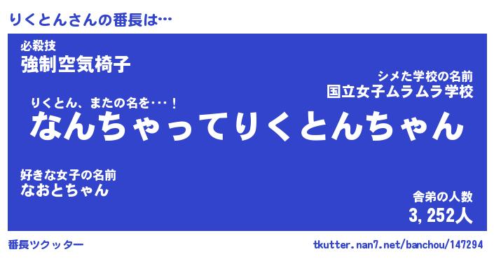 | 肩書あだ名 | 『りくとん店長』『りくとん国家主席』 |