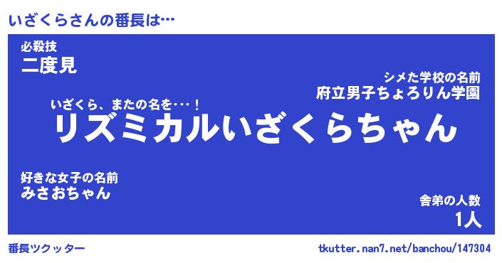 | 意味不明あだ名 | 『ペロリンいざくら』『永久保存いざくら』 |