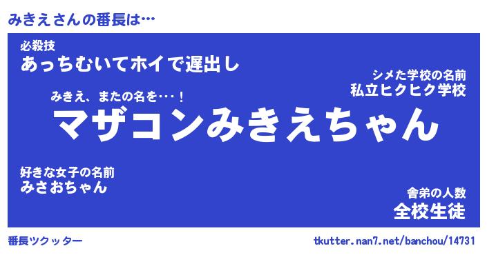 | ヘコむあだ名 | 『みきっふぃ~』『レバニラ』 |