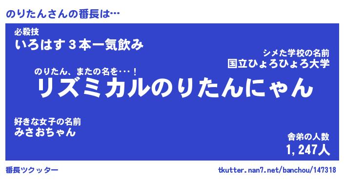 | 2回繰り返すあだ名 | 『のりのり』『ののりり』『ふかふか』 |