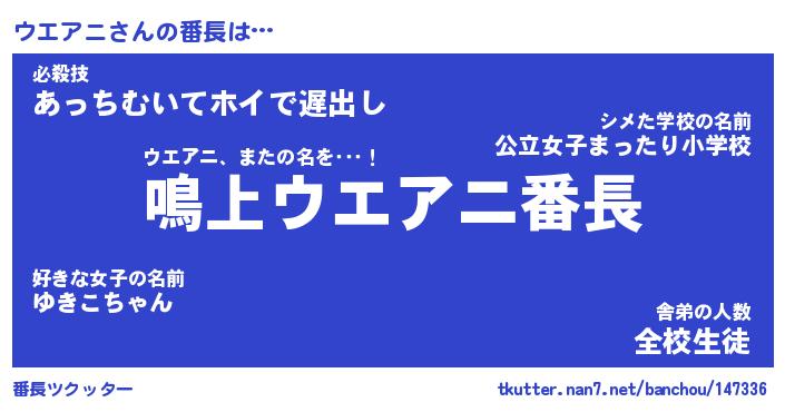 | 意味不明あだ名 | 『ペロリンウエアニ』『永久保存ウエアニ』 |