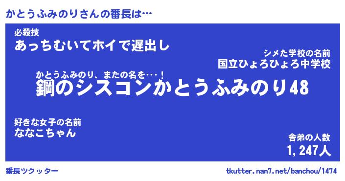 | 伝説のあだ名 | 『封印されしスナイパーかとうふみのり』 |