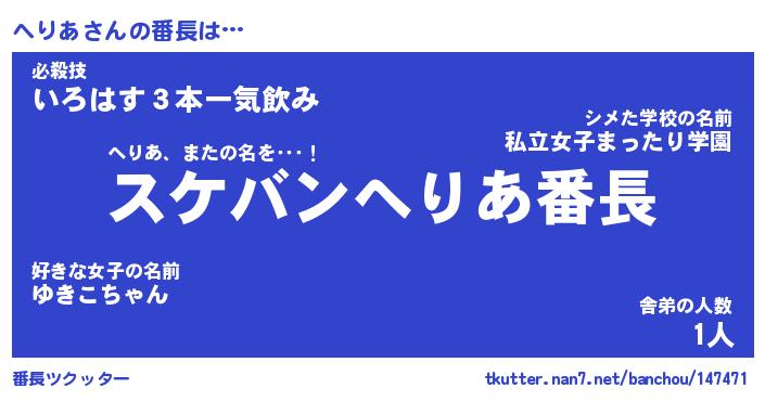 | 意味不明あだ名 | 『ペロリンへりあ』『へりあフォーエバー』 |