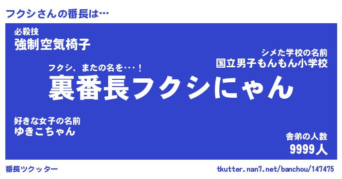 | ヒーロー風カッコイイあだ名 | 『スーパーフクシ』『ウルトラフクシマン』 |
