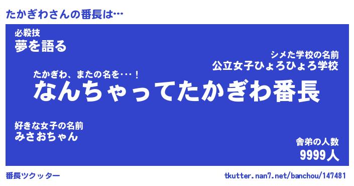 | ファンタジー風あだ名 | 『タカフェル』『エターナルタカギワー』 |