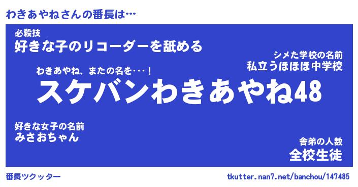 | ファンタジー風あだ名 | 『ワキフェル』『エターナルワキアヤネー』 |