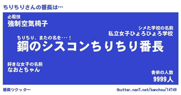 | ヘコむあだ名 | 『ちりにゅー』『牛乳』『ちりぷりん』 |