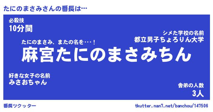 | 男性向けラノベタイトル風あだ名 | 『タニノマサミアートオンライン』 |