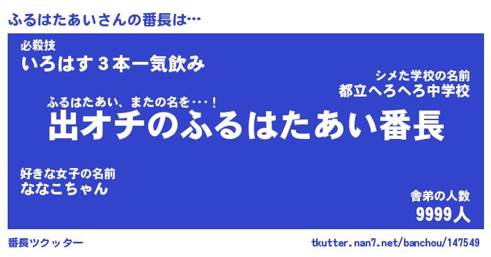 | 伝説のあだ名 | 『伝説のスナイパーふるはたあい』 |
