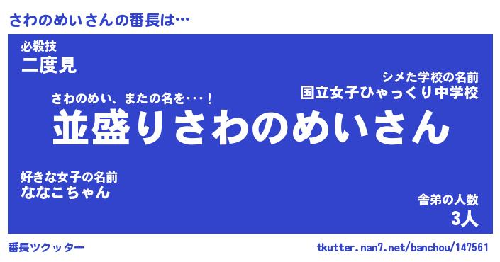 | 肩書あだ名 | 『さわのめいCEO』『さわのめい国家主席』 |