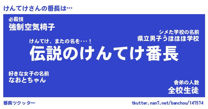 | 意味不明あだ名 | 『ペロリンけんてけ』『永久保存けんてけ』 |