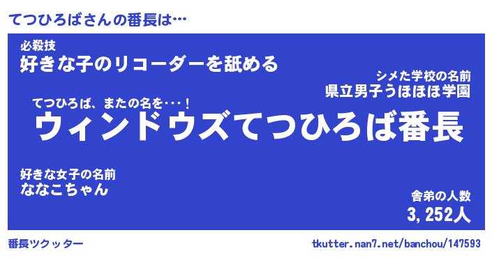 | ヒーロー風カッコイイあだ名 | 『スーパーテツヒロバ』『幻影騎士テツ』 |