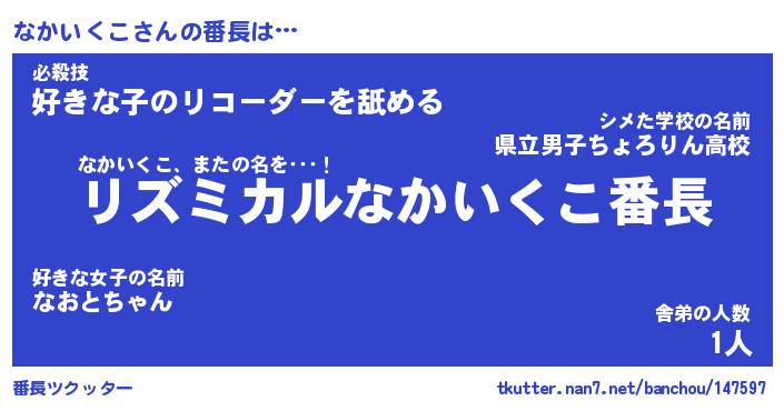 | 伝説のあだ名 | 『伝説のスナイパーなかいくこ』 |