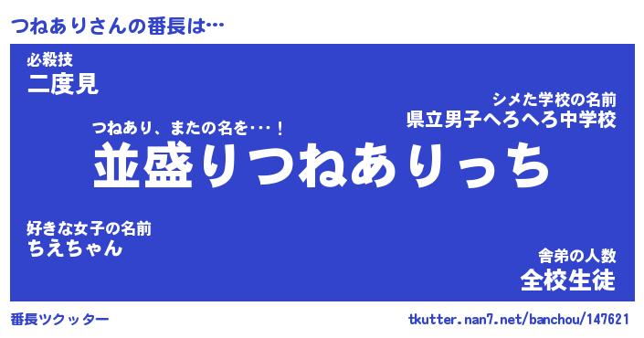 | 意味不明あだ名 | 『ペロリンつねあり』『永久保存つねあり』 |