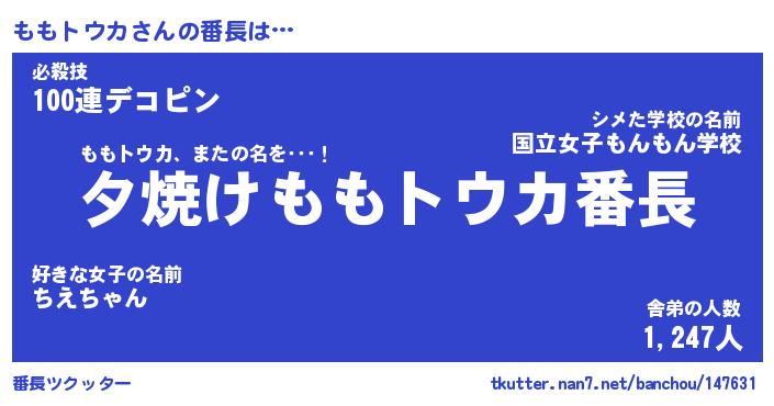 | 伝説のあだ名 | 『封印されしスナイパーももトウカ』 |
