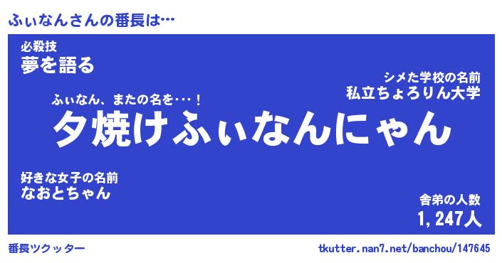 | ヘコむあだ名 | 『ふぃにー』『豆乳』『ふぃ太郎』 |