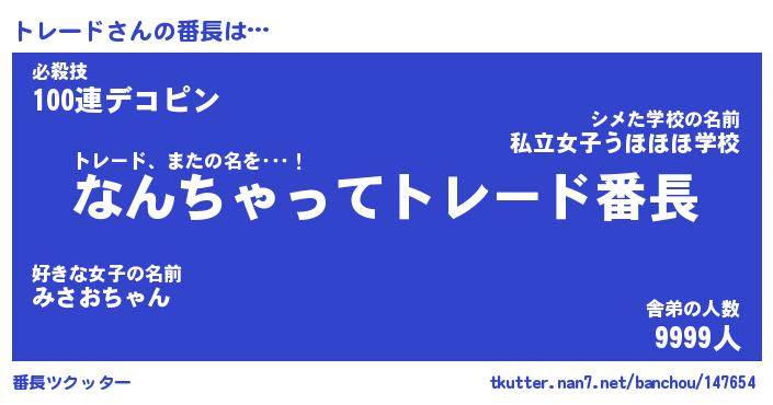 | ヒーロー風カッコイイあだ名 | 『スーパートレード』『天弓騎士トレ』 |