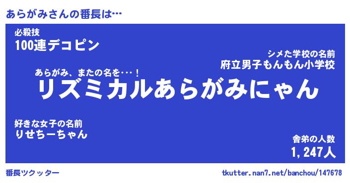 | 肩書あだ名 | 『あらがみ社長令嬢』『あらがみ総理大臣』 |